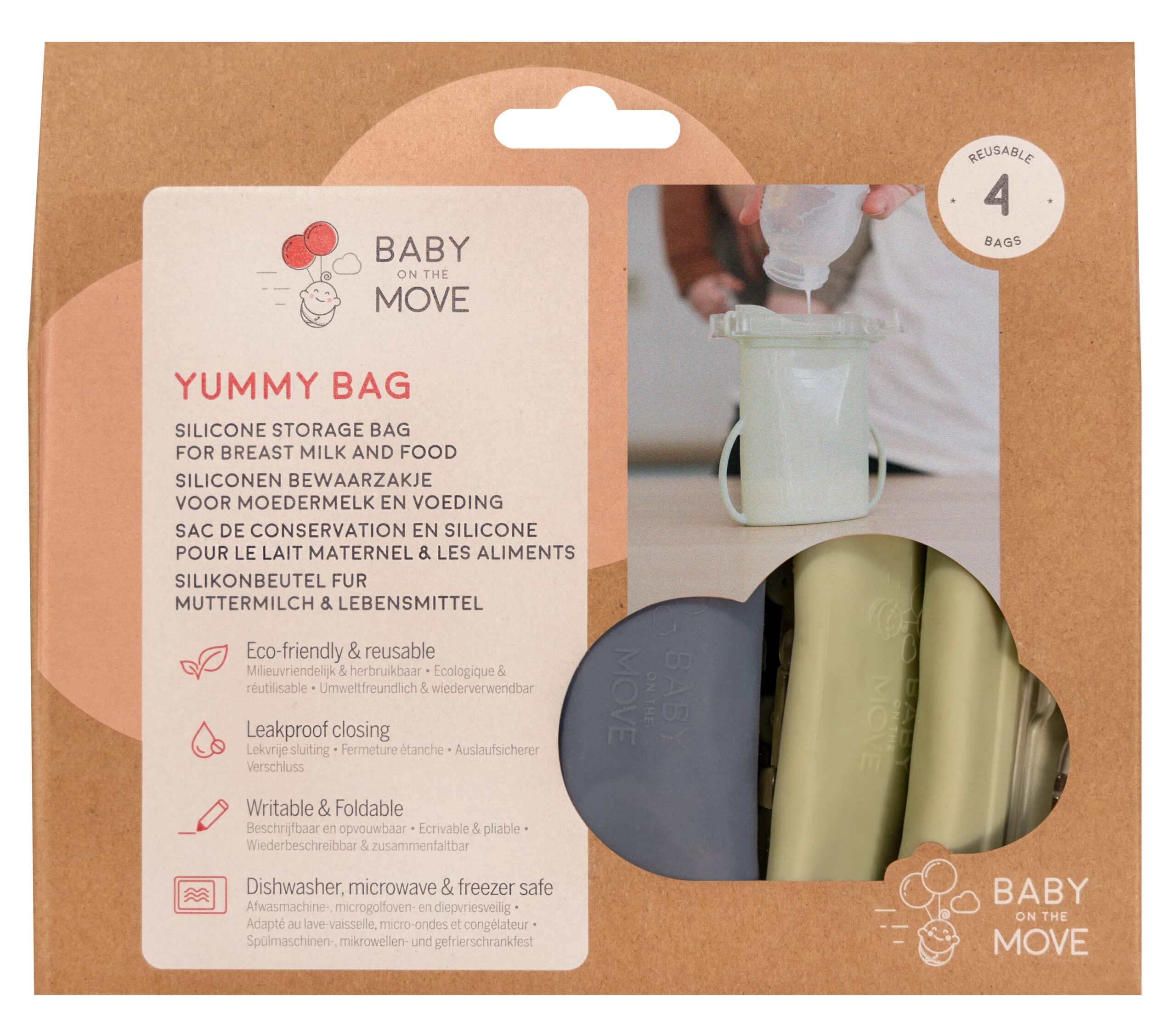 Unsere Yummy Bag ist als Aufbewahrungslösung für Lebensmittel von der Geburt bis zum Schulkindalter (und auch danach) konzipiert. Die Größe ist ideal, um Ihre kostbare Muttermilch sorgenfrei aufzubewahren. Wenn Ihr Baby wächst, können Sie sie nutzen, um Obst- und Gemüsebrei oder andere Leckereien mitzunehmen, wo auch immer Sie hingehen. Wenn Ihr Kind schulreif ist, vergessen Sie nicht, die Yummy Bag in die Schultasche zu packen! Snacks bleiben frisch und Sie müssen sich keine Sorgen über auslaufende Flüssigkeiten machen. Natürlich können Sie die Yummy Bag auch weiterhin für Einzelportionen von Suppen, Snacks und anderen Mahlzeiten verwenden. Wir sind davon überzeugt, dass Ihre Yummy Bag mit der Zeit zu einem unverzichtbaren Element in Ihrer Küche wird.