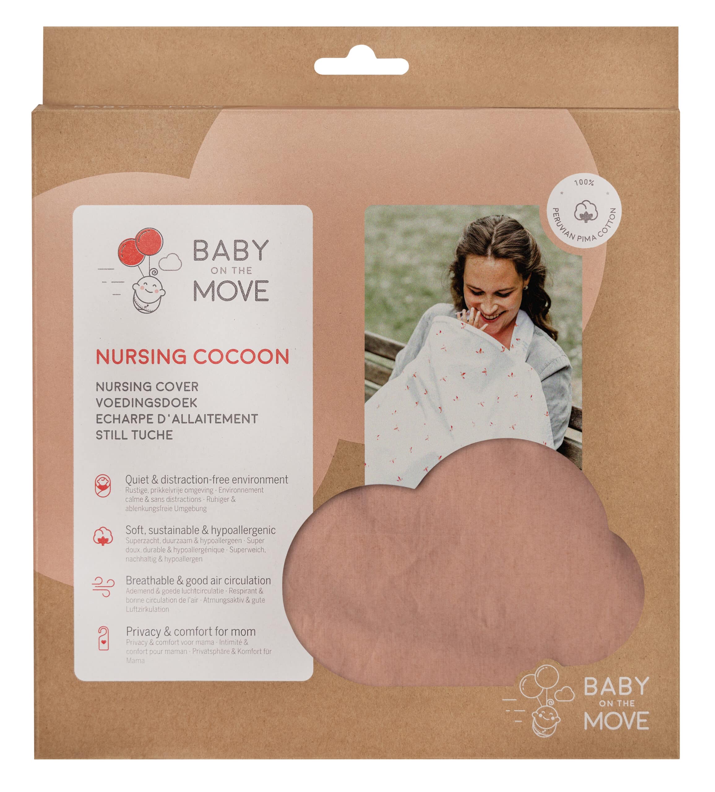 Our breastfeeding cover comes with a convenient washing bag and a matching on-the-go bag so that you can easily take your Baby on the Move Nursing Cocoon with you.