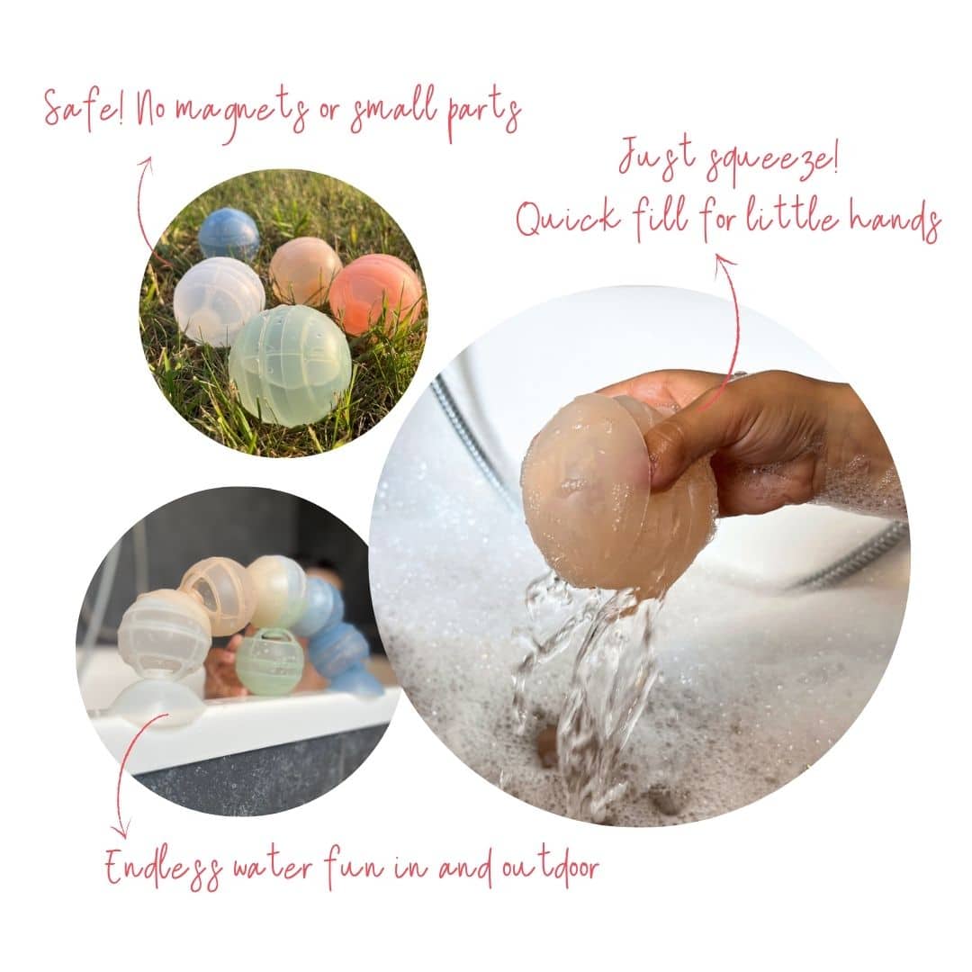 Our Wonder Balloons are made from high-quality food-grade silicone. They have a soft touch and contain no magnets or small loose parts, making them perfectly safe and giving parents peace of mind. Designed for open-ended, imaginative water play, they’re ideal for children aged 3+. They encourage joyful exploration in the bath, at the beach, in the pool or during outdoor fun. Filling them is quick and easy, just squeeze underwater and release.