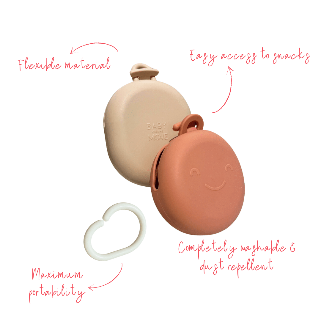 Our Baby on the Move Yummy Grab&Go is the ultimate snack and collect solution for outings with your little ones. The pouches are perfect for quickly packing snacks or pacifiers, or for collecting the precious treasures your rascals find along the way. Whether for a quick trip to the supermarket, a car ride or a treasure hunt in the park or at the beach, the possibilities are endless. Designed with little hands in mind, the pouches are easy to hold, while ensuring nothing falls out while on the move. Hang them on your stroller, backpack, diaper bag or belt easily with our cloud-shaped ring. The Yummy Grab&Go pouches are made of food-grade silicone and are dishwasher safe for easy cleaning. So you can enjoy peace of mind while keeping your little ones happy and satisfied on the go.