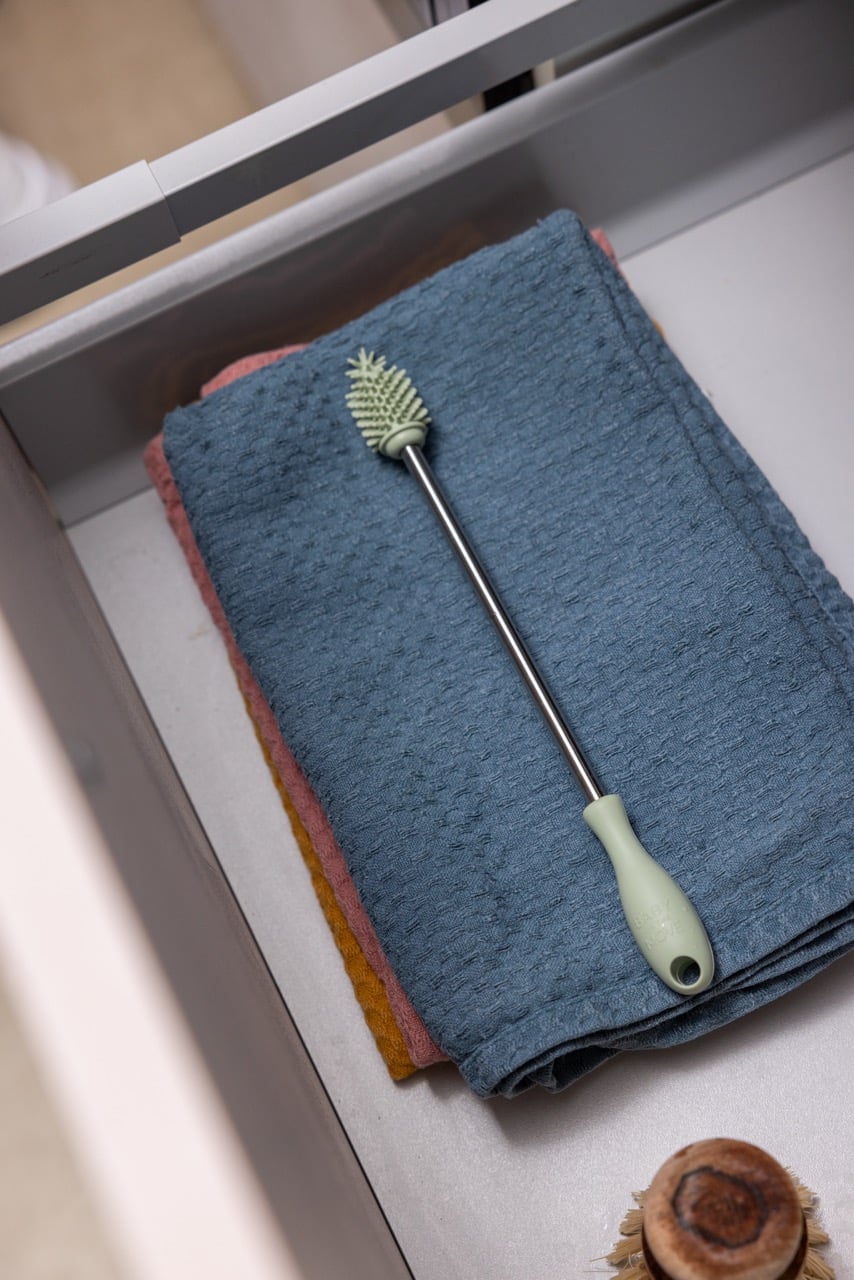 Onze Baby on the Move Yummy Brush is ontworpen voor de precisiereiniging van zowel grote onderdelen als kleine lastige stukjes. Deze veelzijdige borstel is perfect voor flessen, kolfonderdelen, speentjes en al je Yummy producten. Maak schoonmaken snel en moeiteloos, zowel thuis als onderweg. Als je klaar bent, kun je hem gewoon ophangen om te drogen.